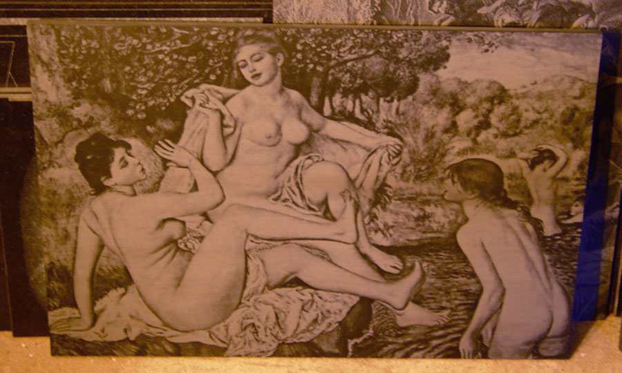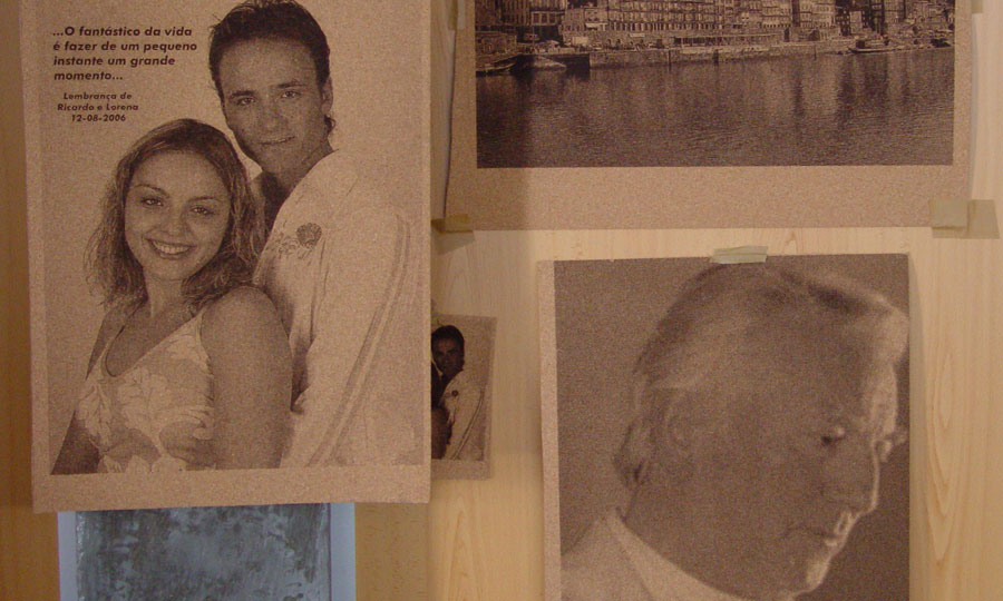 Gravação de imagens foto-realístas em lousa, cortiça e madeira